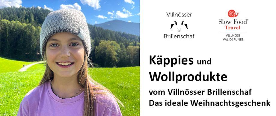 La pecora Villnösser Brillenschaf fornisce una lana molto morbida. La sua lavorazione è perfetta per creare abbigliamento invernale caldo. I nostri prodotti sono: beretti di lana, sciarpa di lana, pantofole di lana, solette di lana, pelliccia d'agnellino. Troverete questi prodotti solo in Val di Funes presso i seguanti punti di vendita: